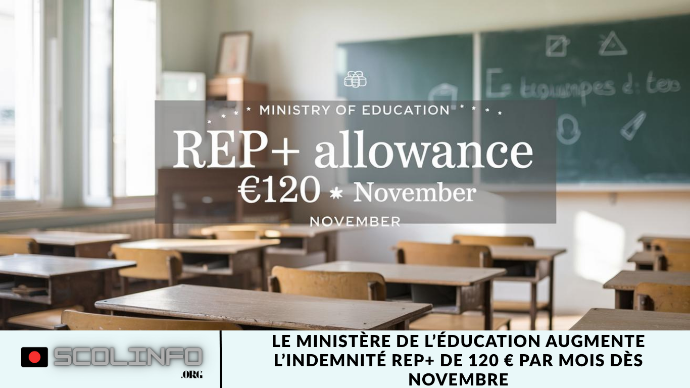 Le ministère de l’Éducation nationale a annoncé une augmentation de 120 euros par mois de l’indemnité REP+ à partir de novembre 2025, pour renforcer le soutien financier des enseignants concernés.